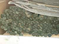 | Eine riesige Menge an unbemalten Riesenstiften... | ...einer davon ist jetzt auf dem Weg zur Grundierung... | ...und so sieht er grundiert aus. | Hier wird er gerade angemalt... | ...und so sieht er bemalt aus!!! |