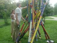 Und so entsteht aus den Stiften die Skulptur und wächst von Tag zu Tag. |